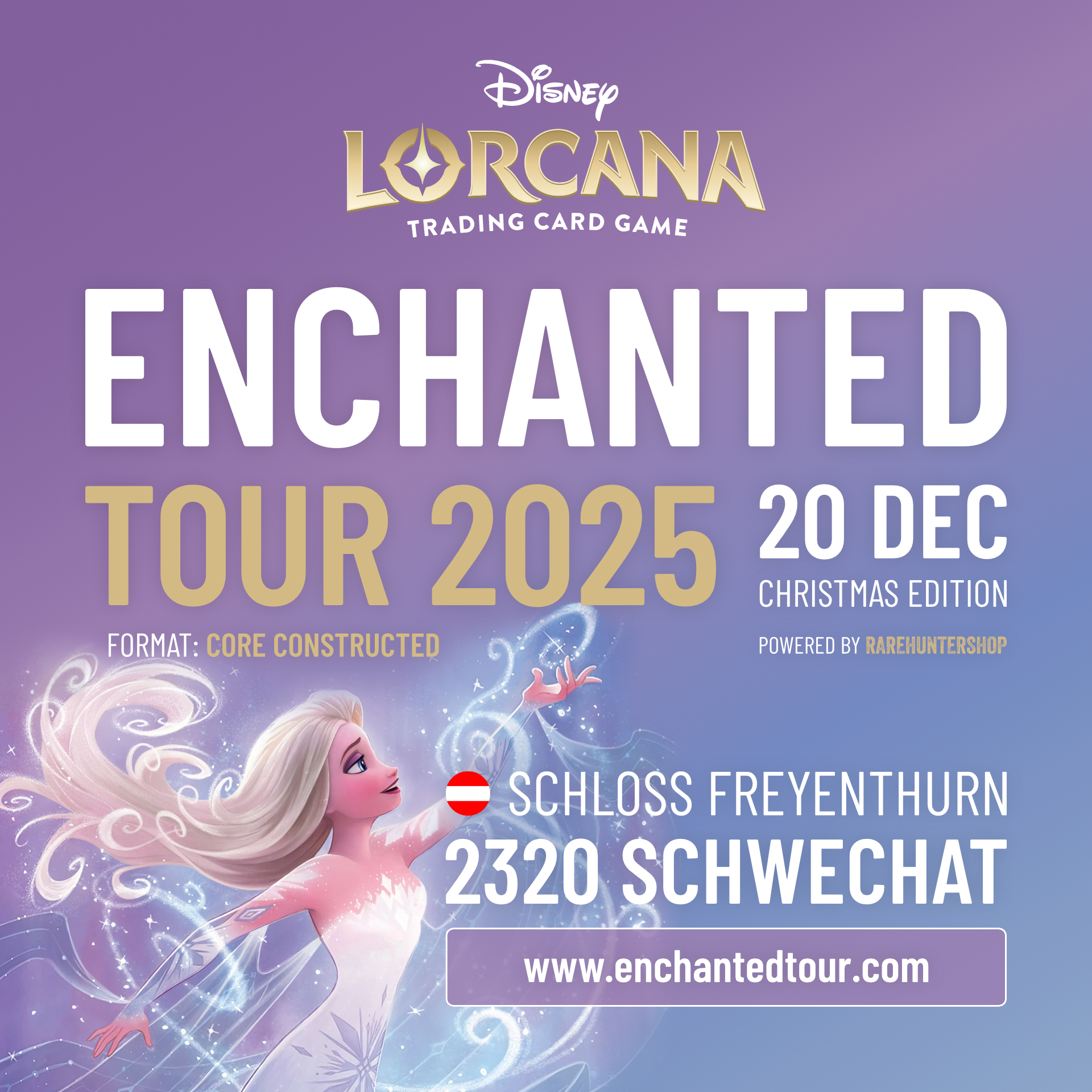 Sei dabei, wenn sich am 20. Dezember 2025 die besten Lorcana Spieler(innen) um den Titel des 7. Enchanted Champions duellieren. Unser Preispool umfasst Sachpreise im Wert von € 7000!